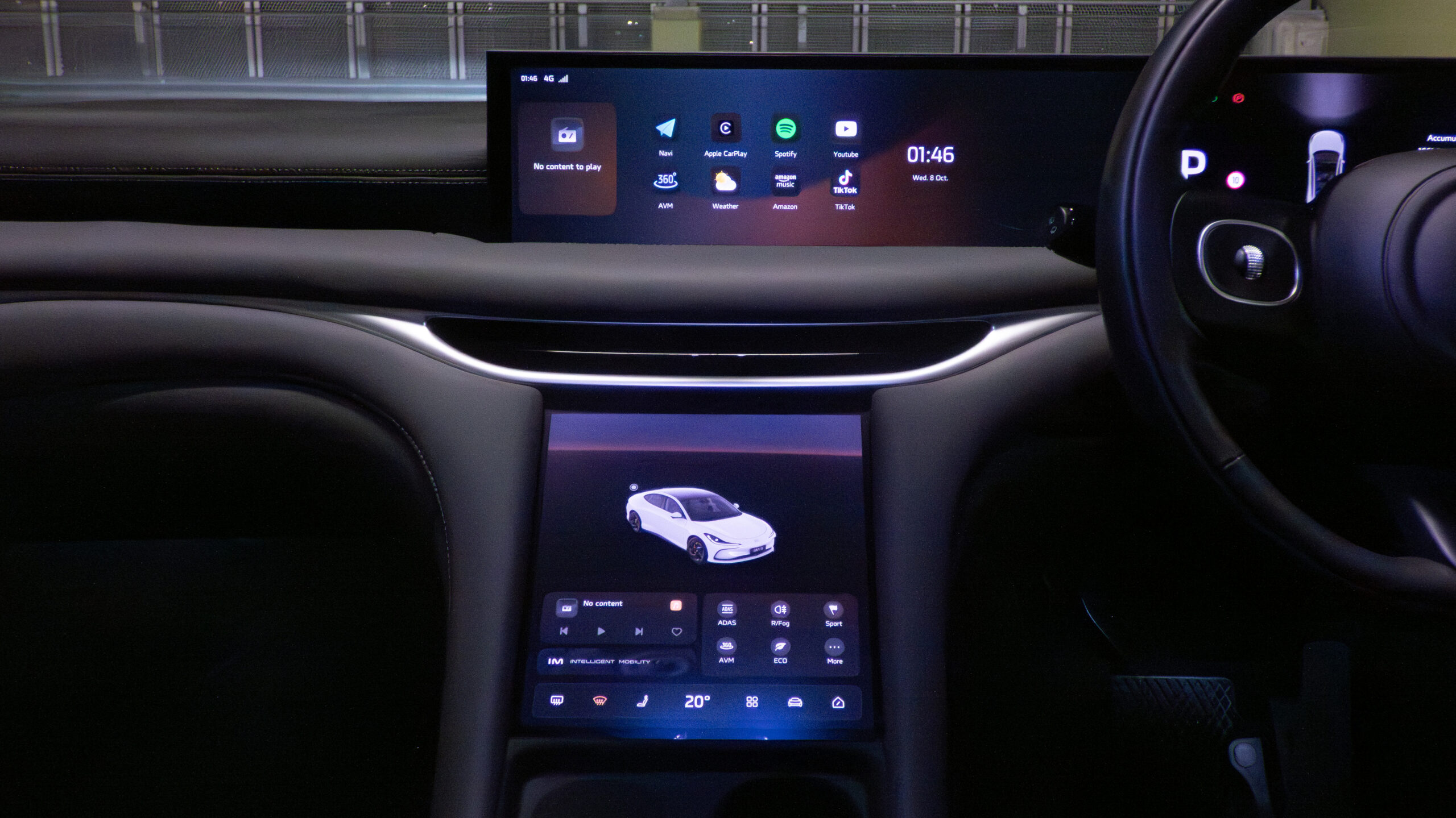 Complementing this main display, a secondary 10.5-inch vertical touchscreen is mounted on the angled centre console for climate controls and other shortcuts. Consequently, in a move that defines its ‘software on wheels’ philosophy, there are no physical buttons for mirrors, air vents, or even the glovebox; instead, everything is controlled via the touchscreens.