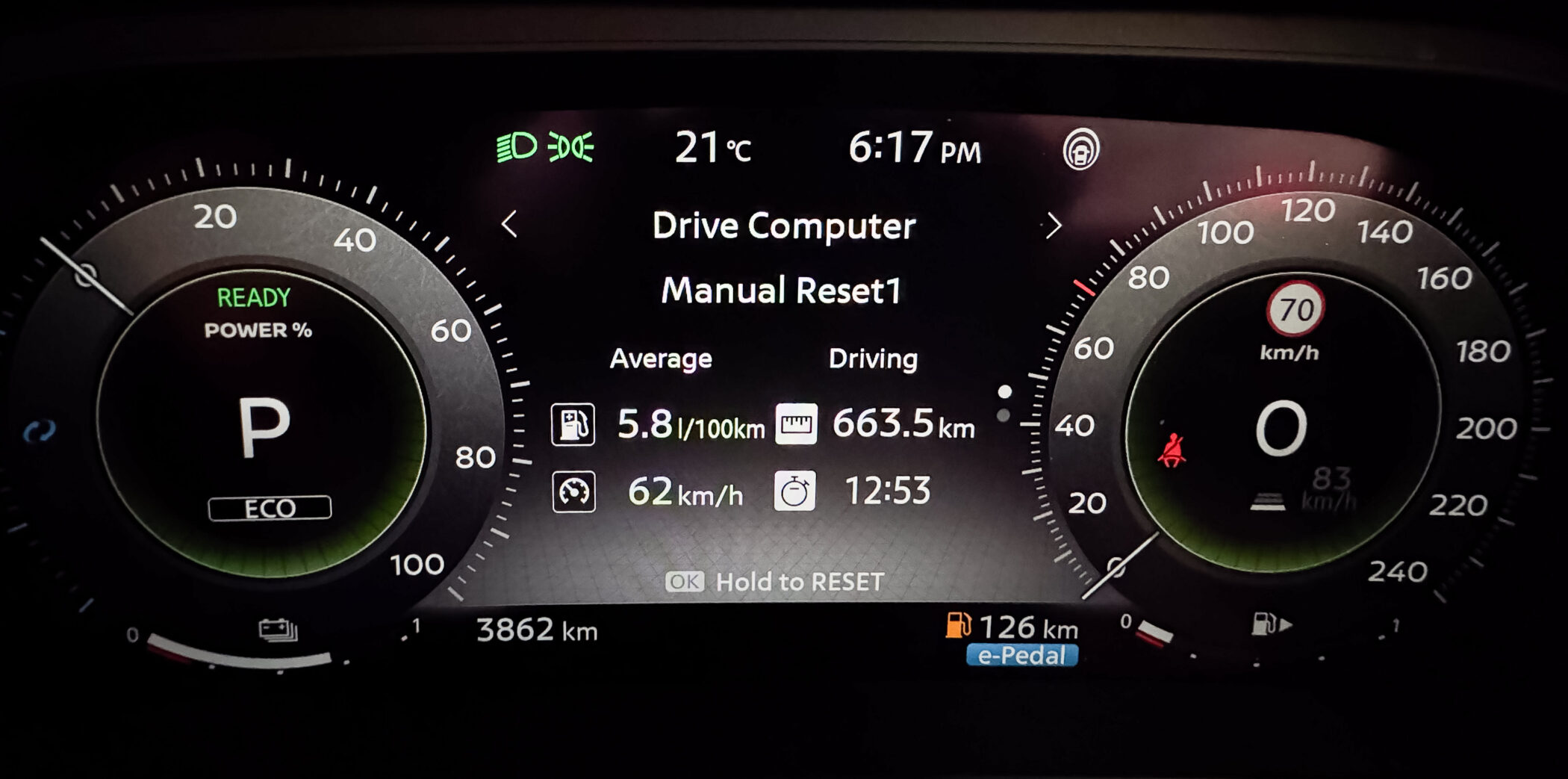 Nissan uses active noise cancellation to keep the cabin hushed, making it a very refined highway cruiser. Real-world fuel economy is generally good, though often slightly higher than the official 5.2L/100km claim, typically settling in the mid-to-high 5s depending on driving style.